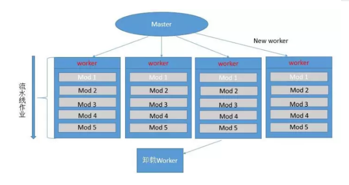 高可靠性:主控进程和worker是同步实现的,一个worker出现问题,会立刻启动另一个worker。