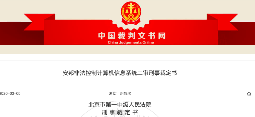 2019年1月4日,北京市海淀区人民法院正式立案。公开审理认为,被告人安某违反国家规定,采用技术手段对计算机信息系统实施非法控制,情节特别严重,其行为已构成非法控制计算机信息系统罪,应予惩处: