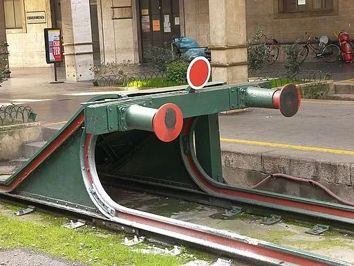 对,就是铁道端头那个巨大的弹簧一类的东西。作用是万一车没停住(是没停住啊,刹车了但是差一点没刹住那种,不是不拉刹直接撞上来),撞弹簧上减速慢,危险小一些。叫缓冲。