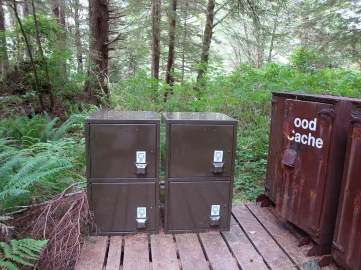 没错,就是一种保管箱。看到右边那个被锈掉的Food Cache没?这是部署在森林里的存应急物资的保管箱。功能是把你需要用的东西放在更容易拿到的地方。虽然常用准确翻译叫缓存,但个人以为意思表达的不对,丢了一半的功能。台湾的翻译更好,叫快取。