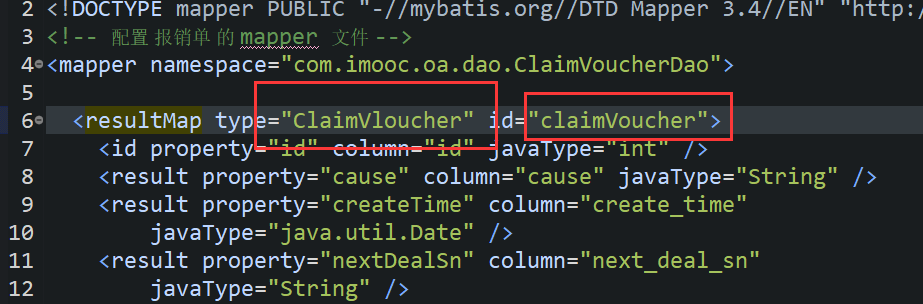 报错的原因是 mybatis的映射文件接口的 resultMap的 别名类型 Tpye 写错了 所以会提示 XML文件出了错误