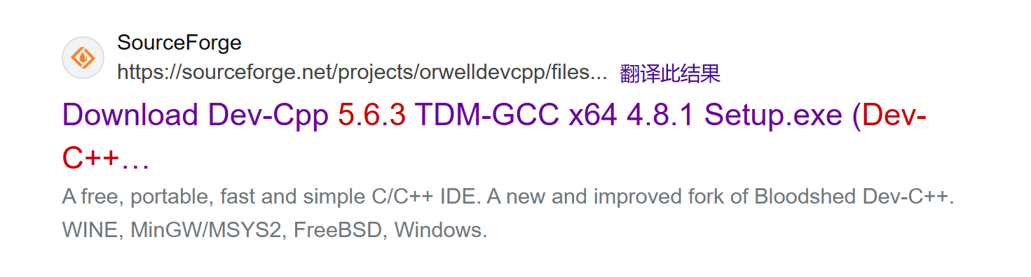 官网https://sourceforge.net/projects/orwelldevcpp/ 默认下载的版本是5.1.1版