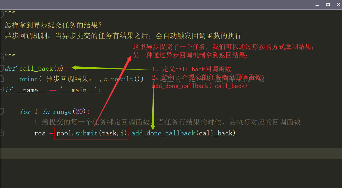 异步回调机制就是我们定义一个回调函数,当异步提交的任务有返回结果时会自动触发回调函数的执行!