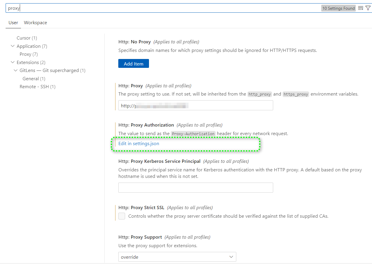 - 在VS Code Setting中搜索proxy
