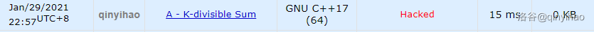 设\(s\)是数组\(a\)的所有数的和。一方面,\(s\)应该能被\(k\)整除,那么我们就可以说\(s=cf·k\)。从另一方面,因为所有的\(a_i\)都是正数,所以\(s \geq n\)。