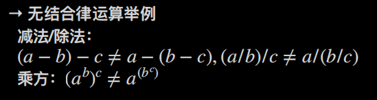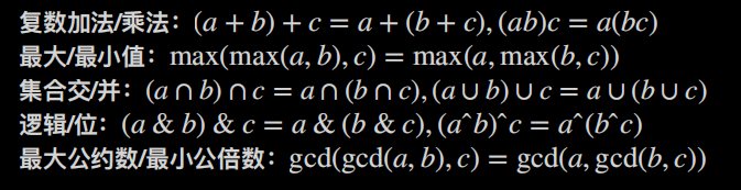 - 若 \((a*b)*c=a*(b*c)\), 满足结合律。