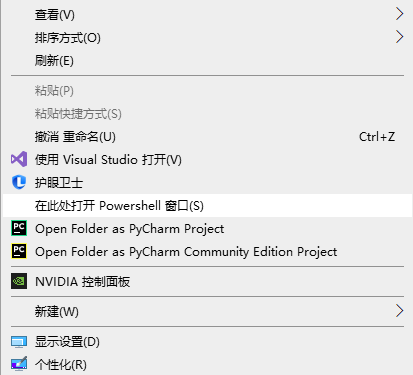 按住shift+右键,打开powershell窗口(就是打开命令行窗口):