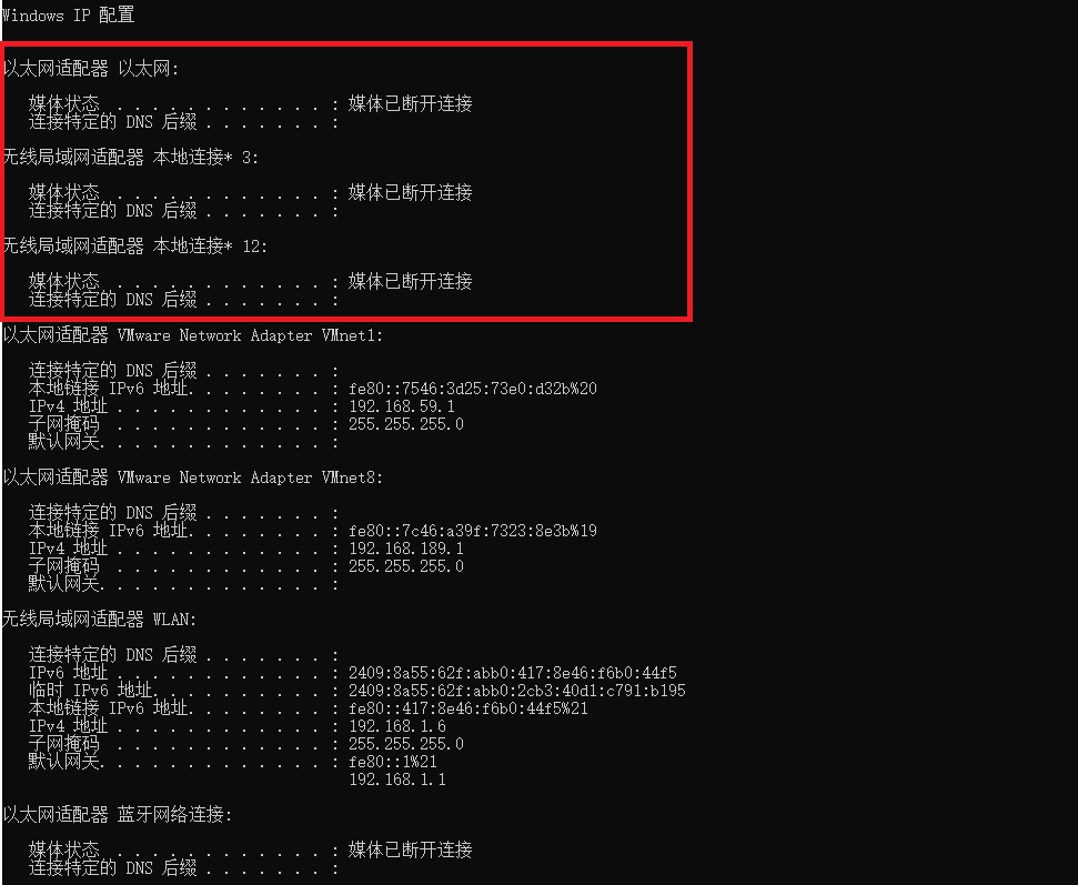 如果使用的是无线网络就看无线局域网适配器这块: