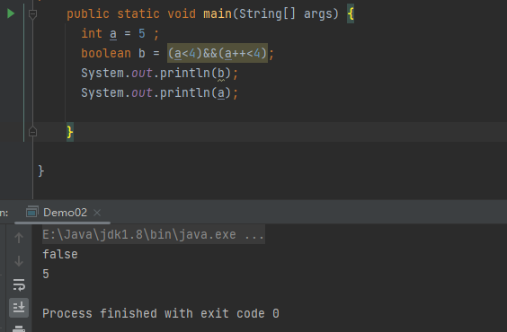例子中的b在执行完a<4(5<4),就可以得出false,然后&&后面跟着的内容就会直接不去执行,所以a结果仍是5。