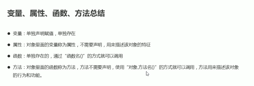 // 属性 在对象里面的不需要声明的 使用的时候必须是 对象.属性
