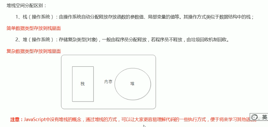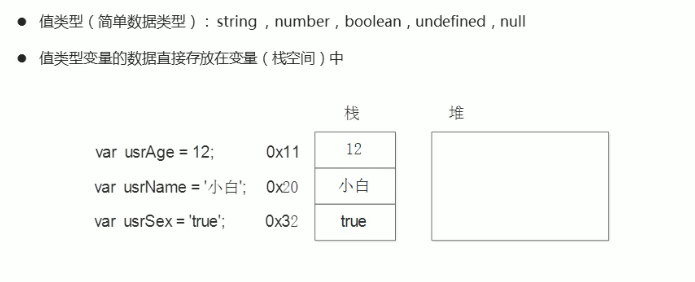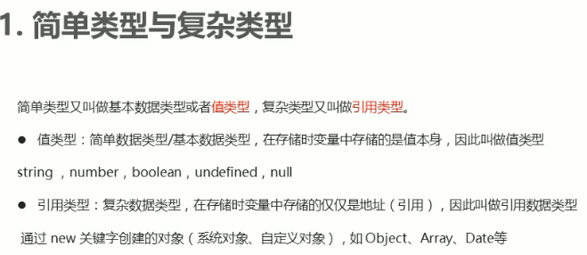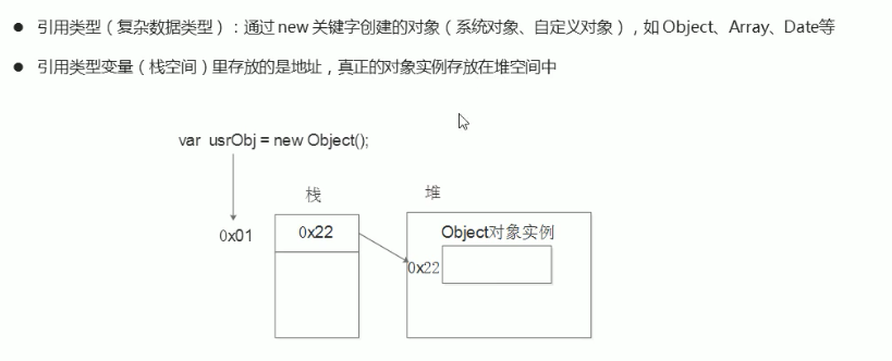// 2. 复杂数据类型 首先在栈里面存放地址 十六进制表示 然后这个地址指向堆里面的数据