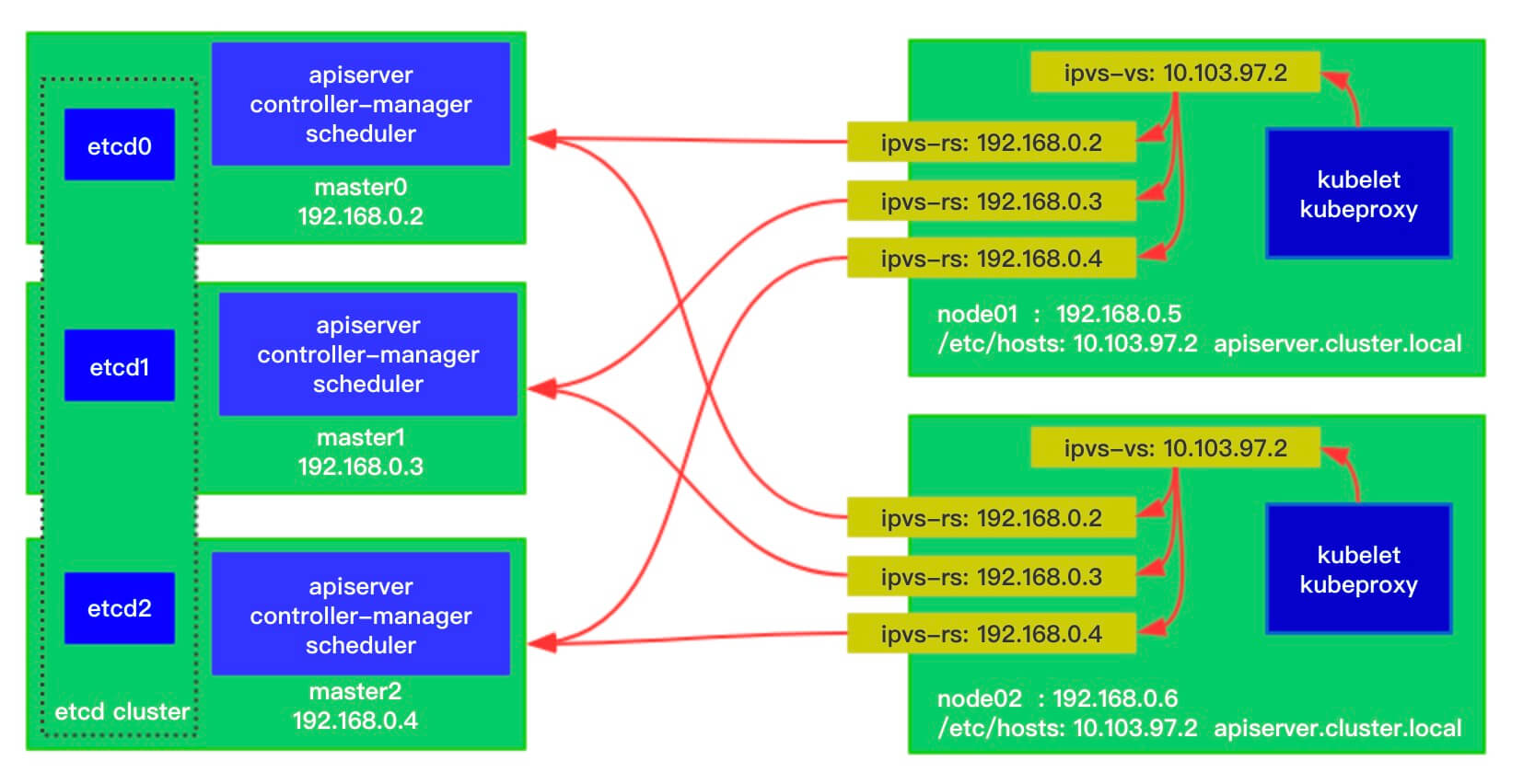 主机名 IP地址 master0 192.168.0.2 master1 192.168.0.3 master2 192.168.0.4 node0 192.168.0.5 -