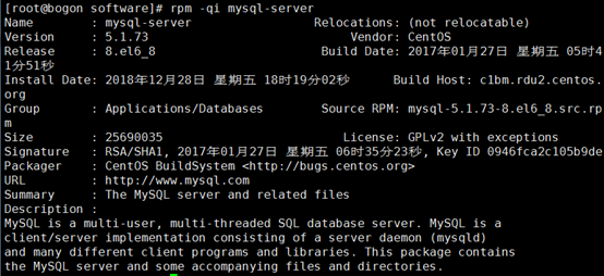输入:rpm -qi mysql-server