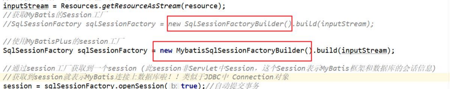 (4)测试类中,修改 Session 工厂的创建代码,有 Mybatis Plus 的相关类来创建该对象
