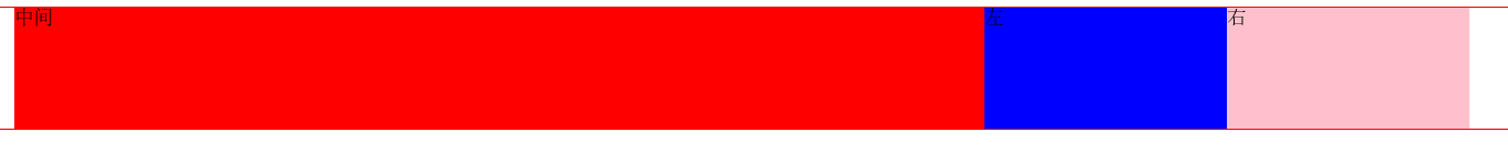 <div class="cont"> <div class="center">中间</div> <div class="left">左</div> <div class="right"> 右</div> </div>