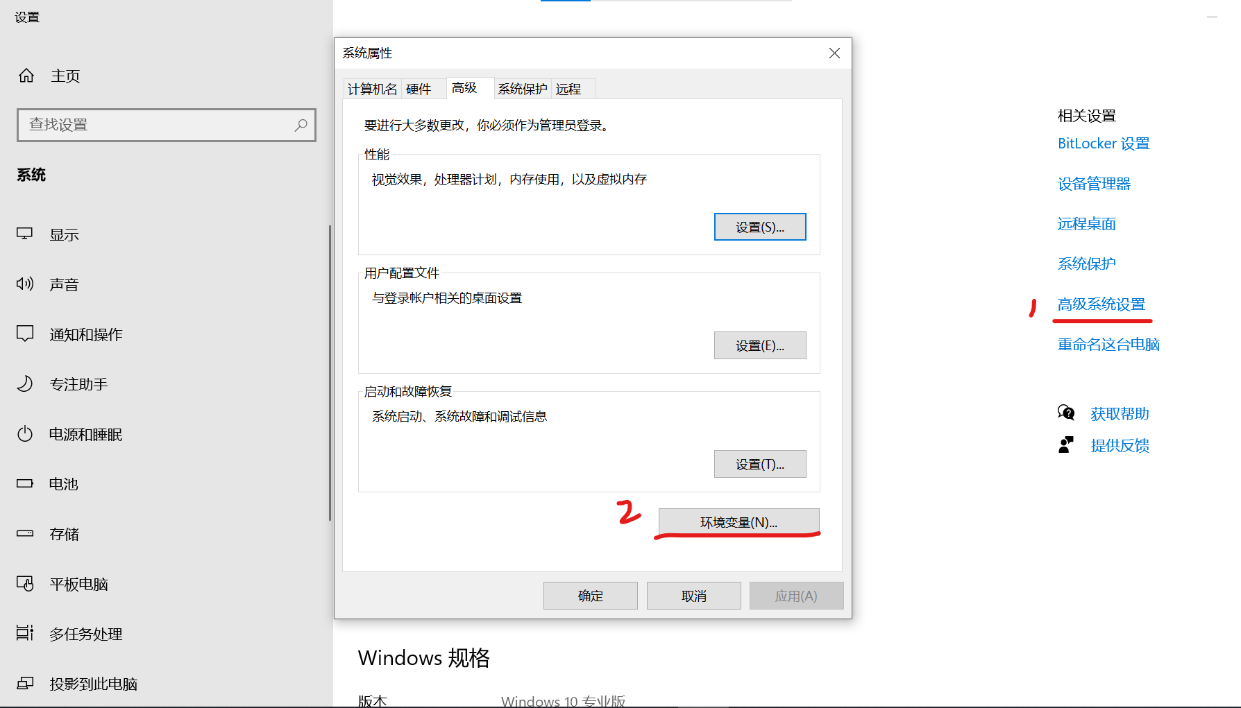 2.进入高级系统设置,配置环境变量;