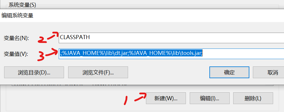 5.在系统变量中,还可以新建CLASSPATH变量;