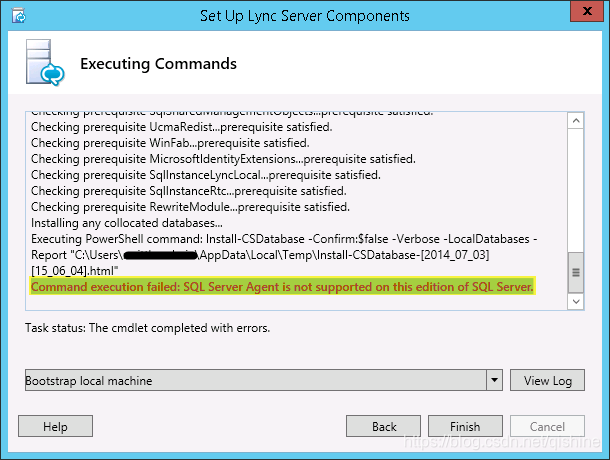 继续安装向导,安装SQL数据库。但是在最后的时候遇到了问题。