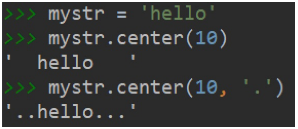 center():返回⼀个原字符串居中对⻬,并使⽤指定字符(默认空格)填充⾄对应⻓度 的新字符串,语