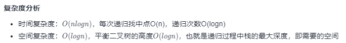 class Solution { public TreeNode sortedListToBST(ListNode head) { //1. 特例处理 if (head == null){ return null; }else if(head.next == null){ return new TreeNode(head.val); } //2. 利用快慢指针找链表中间节点 ListNode slow = head, fast = head; ListNode pre = null; while( fast != null && fast.next != null){ pre = slow; slow = slow.next; fast = fast.next.next; } //3. 创建树的根节点,并断开相应连接 TreeNode root = new TreeNode(slow.val); pre.next = null; //4. 递归链表中间节点左右两边的子链表 root.left = sortedListToBST(head); root.right = sortedListToBST(slow.next); return root; } } 作者:edelweisskoko 链接:https://leetcode-cn.com/problems/convert-sorted-list-to-binary-search-tree/solution/109-you-xu-lian-biao-zhuan-huan-er-cha-s-x583/ 来源:力扣(LeetCode) 著作权归作者所有。商业转载请联系作者获得授权,非商业转载请注明出处。