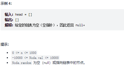 给你一个长度为 n 的链表,每个节点包含一个额外增加的随机指针 random ,该指针可以指向链表中的任何节点或空节点。