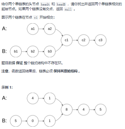 这道题目的思想是让 aa, bb 指针都走一遍 headAheadA, headBheadB 两个链表, aa, bb 相遇的地方就是两个链表相交的地方.