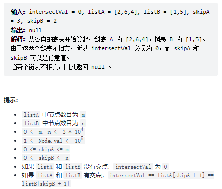 这道题目让求两个链表相交的节点, 利用双指针法 O(m+n)O(m+n) 就可以遍历完成