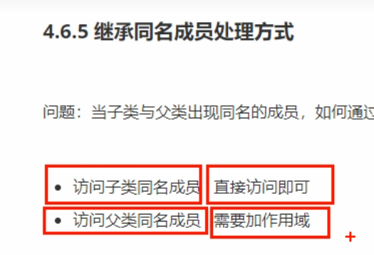 对于父类和子类同名的静态成员也是通过作用域来处理使用(通过对象的访问) 如果是通过类名来访问:类名::成员,【拿到父类的成员(子类名::父类名::成员)】