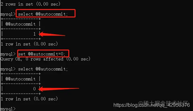 需要关闭自动提交,通过set @@autocommit=0; 设置为手动提交。0代表手动提交,1代表自动提交。