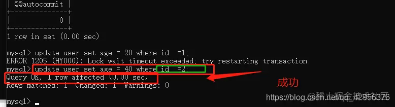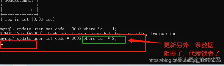另一个事务我去更新另外一条数据,如果我更新成功了,就是锁行,失败了就是锁表。