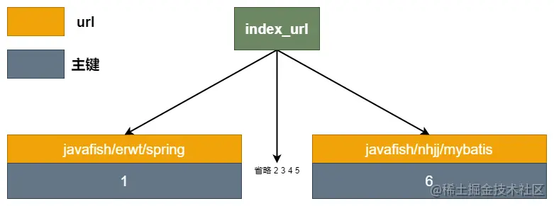 我随意画了张图,在 MySQL index_url 的结构是这样的: