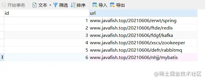 javafish的记录,找到的第一个是 ID1;到主键上查到主键值是 ID1 的行,判断出 url 的值不是javafish/nhjj/mybatis,这行记录丢弃; - 取刚刚查到的位置 ID1 的下一条记录,发现仍然是