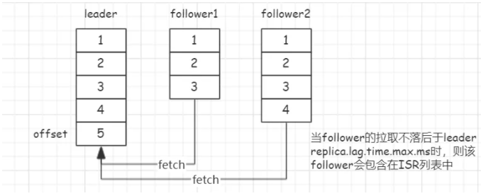 Kafka 为了维护分区副本的同步,引入 ISR(In-Sync Replicas)副本集合的概念,ISR 是分区中正在与 leader 副本进行同步的 replica 列表,且必定包含 leader 副本。