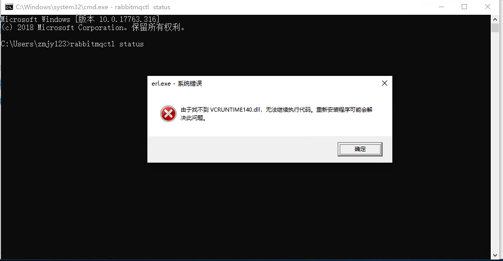 - 1.在cmd输入rabbitmqctl status,提示找不到VCRUNTIME140.DLL,无法继续执行代码