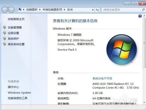 桌面计算机鼠标右键属性,打开系统属性窗口,如下图所示: