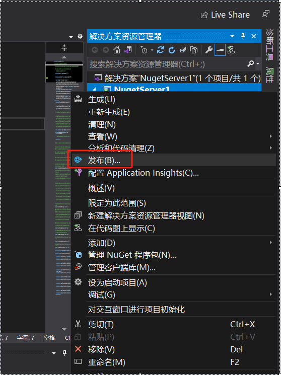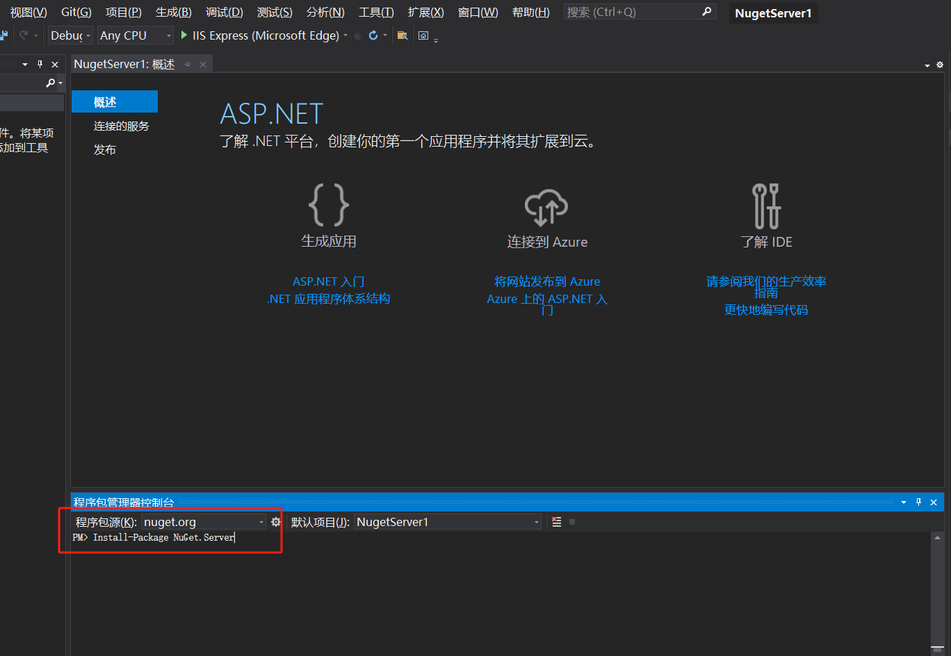 选择 工具-->NuGet程序包管理器-->程序包管理器控制台, 打开NuGet命令行控制台,安装nuget.server服务,如图所示