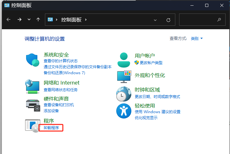打开控制面板-》选择卸载程序-》选择启动或关闭windows功能,如图所示