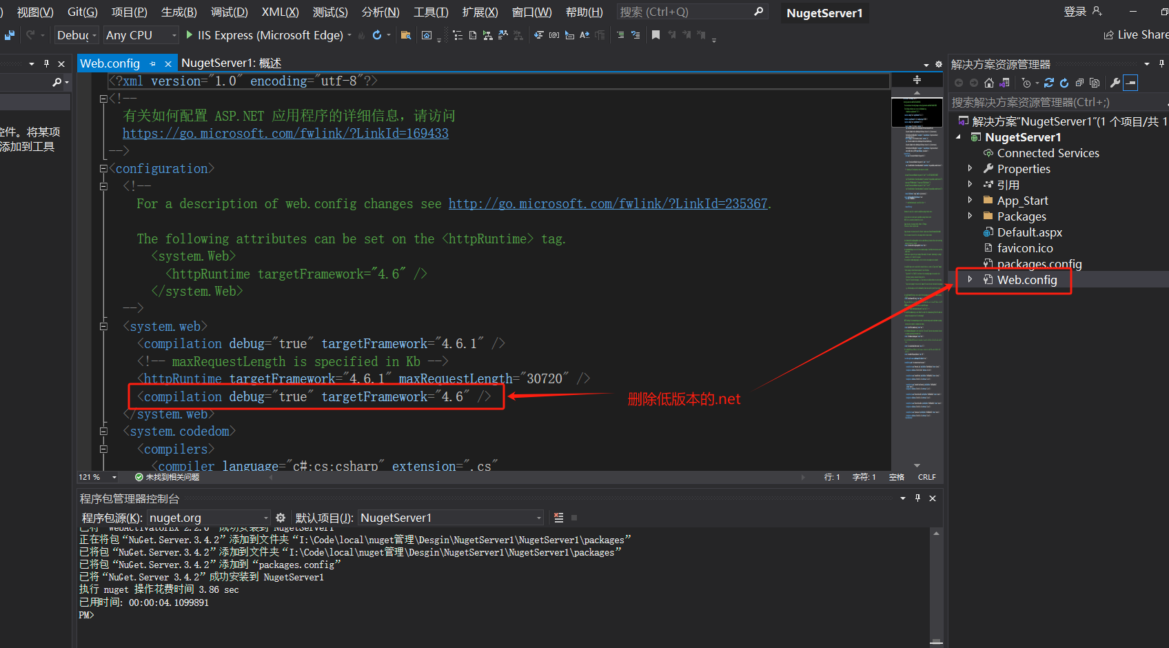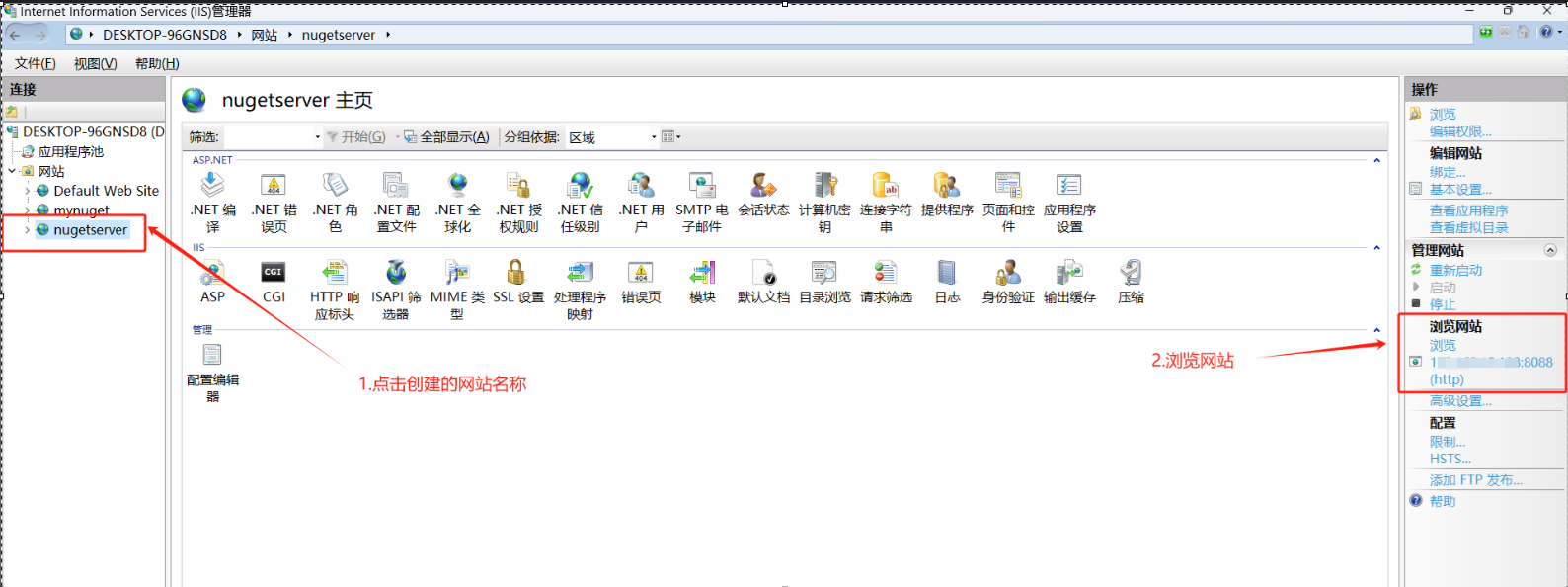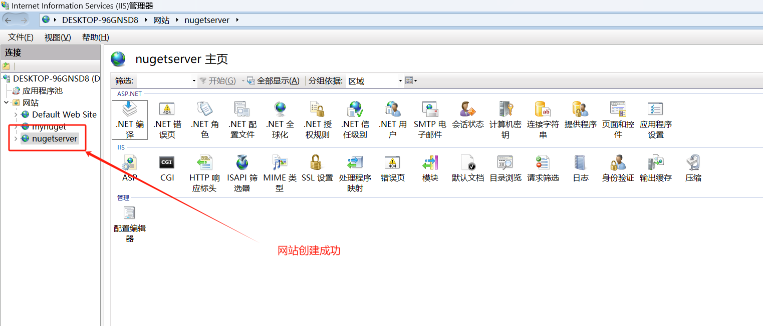 至此,已完成NuGet.Server服务包的安装。 - 安装IIS服务管理