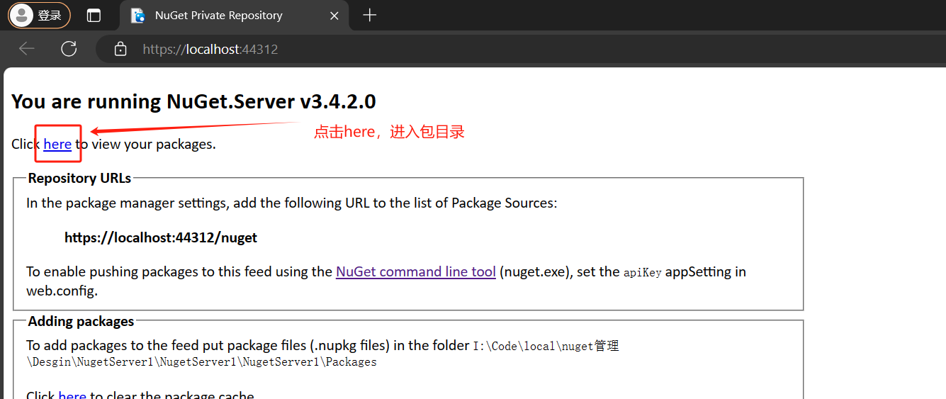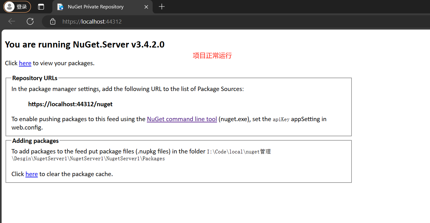 至此,NuGet服务网站已部署完成。 - 私有库配置