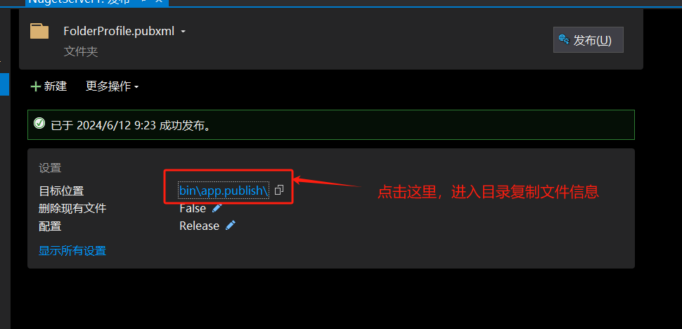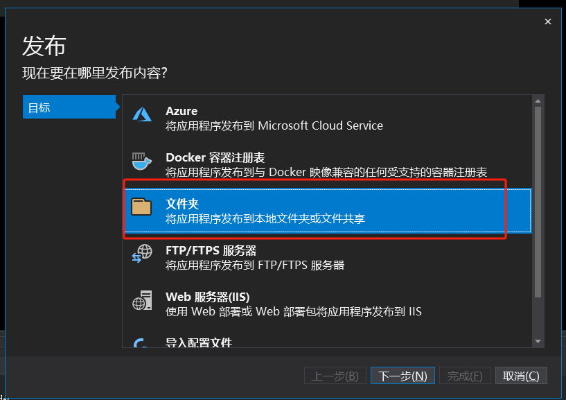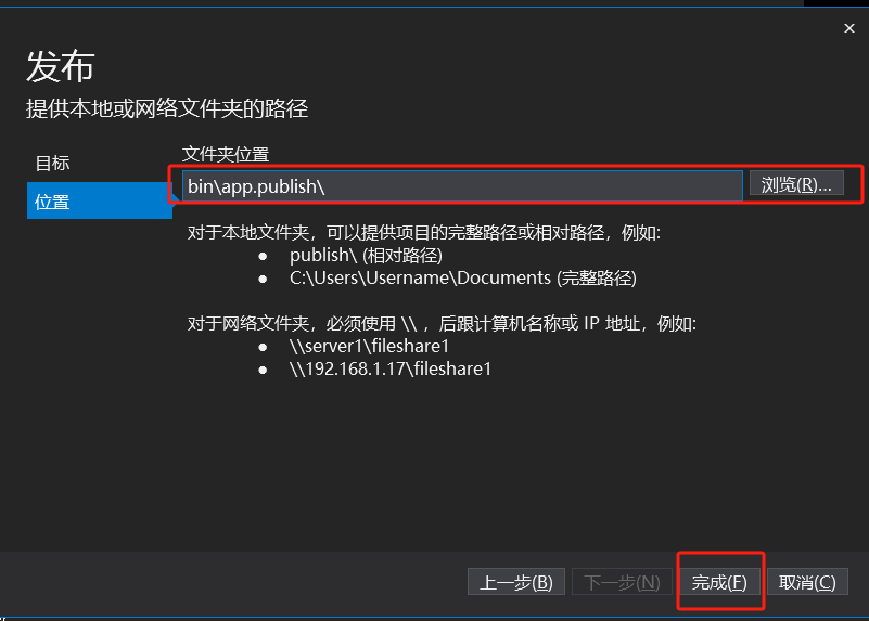 点击“目标位置”右边,进入发布文件目录,如图所示