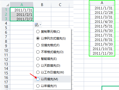 2、Excel工作表中,快速填充2011年~2013年每月最后一天日期的最优操作方法?
