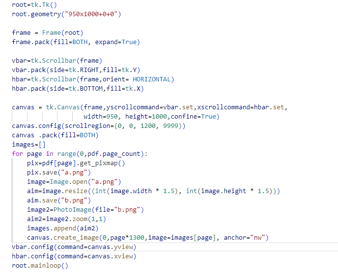 曾试着将adobe reader的默认视图设置为100%,无奈受限于屏幕高度,不管怎样调整设置,都撼不了82.7%,这是真撞墙了,故从昨下午就想着在python上做一个默认100%显示pdf的图形界面,为什么是python?对运行速度,界面美观没要求,能运行就行,python有现成的pdf操作包,即学即用。为什么是tkinter?简单易用,先运行,有必要再换道。
