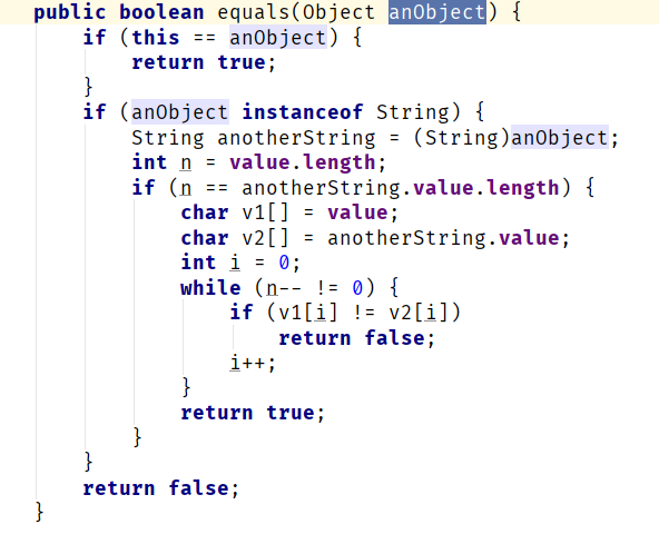 刚刚去看了String下面equals的源码,String自己重写了equals的方法,它在方法内部,把传进来的字符串和要对比的本身字符串做了拆分,然后使用两个char数组做了保存,接下来在两个数组长度相等的情况下做了while循环,将两个数组一一对应的字符,从下标0开始,判断是否相等,只有全部相等才会返回ture,所以在不重新equals的前提下,equals和==没有区别。