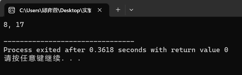 #include <stdio.h> int func(int n, int m); int main() { int n, m; while(scanf("%d%d", &n, &m) != EOF) printf("n = %d, m = %d, ans = %d\n", n, m, func(n, m)); return 0; } //函数定义 int func(int n, int m) { int ans; if(m==n||m==0) ans = 1; else if(m>n) ans = 0; else ans = func(n-1, m) + func(n-1, m-1); return ans; }