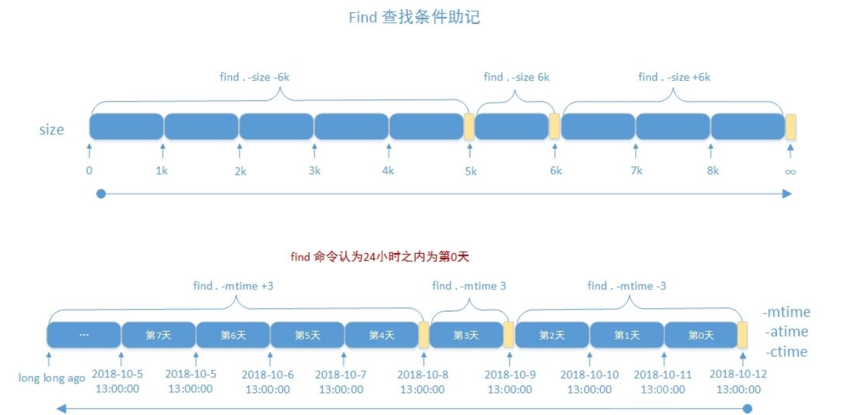 查找条件:指定的查找标准,可以文件名、大小、类型、权限等标准进行;默认为找出指定路径下的所