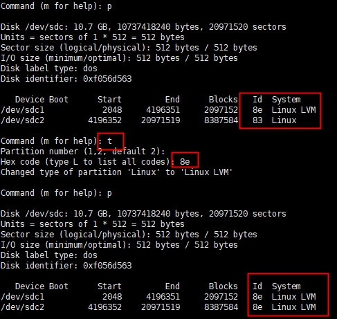 如果是将分区创建为物理卷要先更改分区编号为 8e
