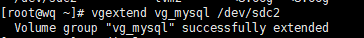 vgextend vg_mysql /dev/sdc2