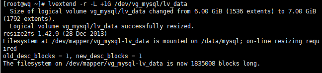 lvextend -r -L +1G /dev/vg_mysql/lv_data