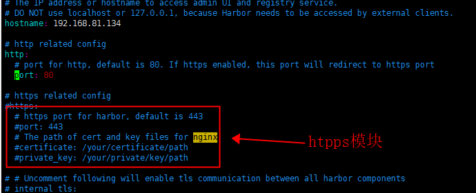 不使用https 需要将https配置文件注释掉 不然无法启动