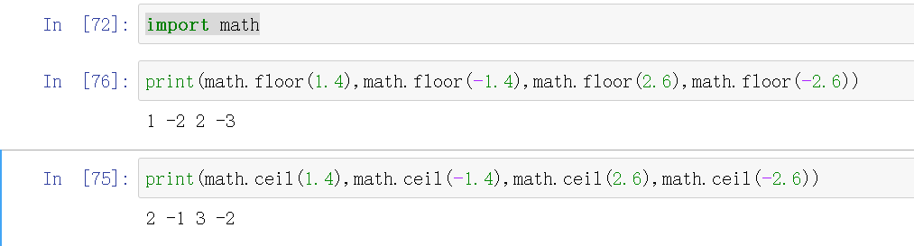 math模块的floor()、ceil()函数;内建函数int()、round();运算符//